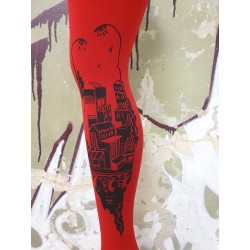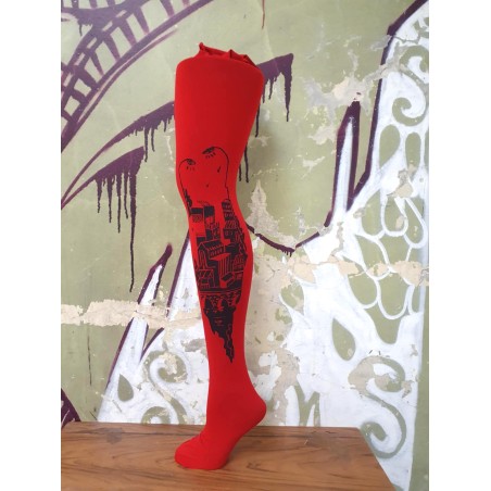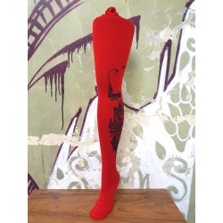 Motif imprimé sur une seule jambe en blanc sur collant noir ou bleu nuit