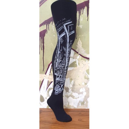 Motif imprimé en blanc sur noir ou bleu nuit.